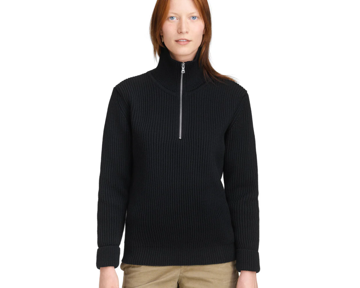 Der Navy Half-zip ist kompakt gestrickt, vollständig geformt und auf einer Flachstrickmaschine hergestellt.