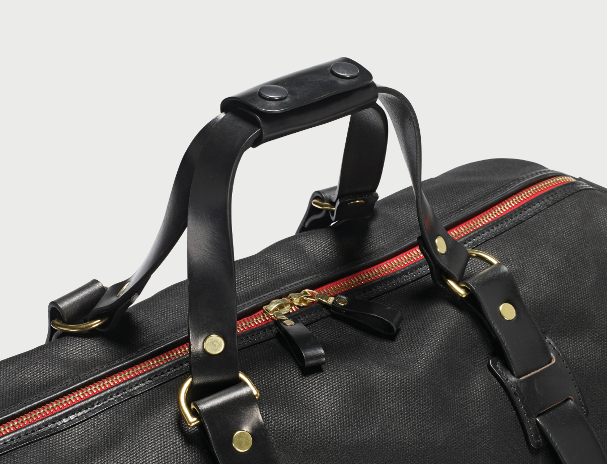 Die Holdall Medium-Reisetasche ist eine lässige Reisetasche mit Ledergriffen, abnehmbarem Schultergurt und zwei Reißverschlusstaschen an den Enden.