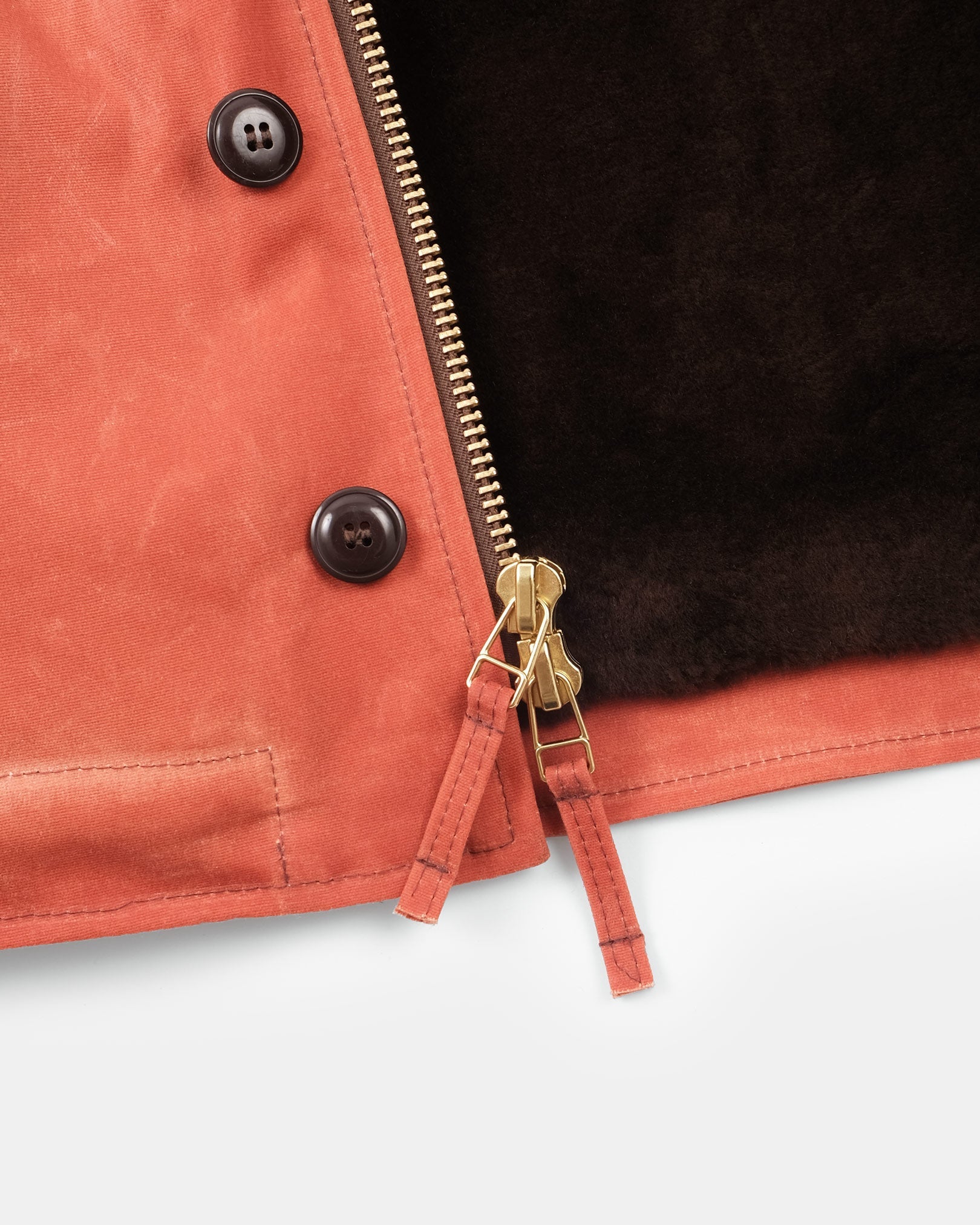 - 6 Knöpfe und ein massiver Messing-Reisverschluss